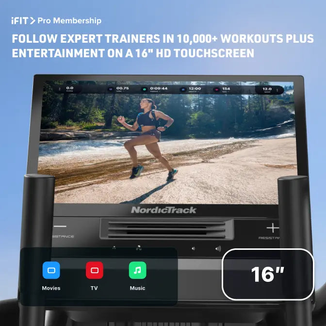 Climb to new heights with low-impact, stair-stepping workouts. Build lower body strength with 22 resistance levels for optimal glute and quad activation. Paired with iFIT, immerse yourself in stunning workouts around the world on our 16” touchscreen.